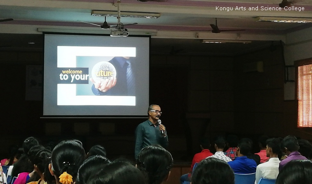 Induction Programme for first year UG students. Resource Person Mr. Erode Kathir (Kathirvelu Palanisamy), Chief Trainer, Six Plus One Academy, Erode.
