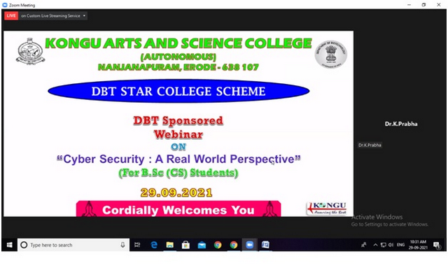 Guest Lecture-Webinar On Cyber Security: A Real World Perspective Mr. Praveen Thirumurugan, Software Development Engineer, Caterpillar Incorporation, Chennai Beneficiaries: 325 B.Sc (CS) Students