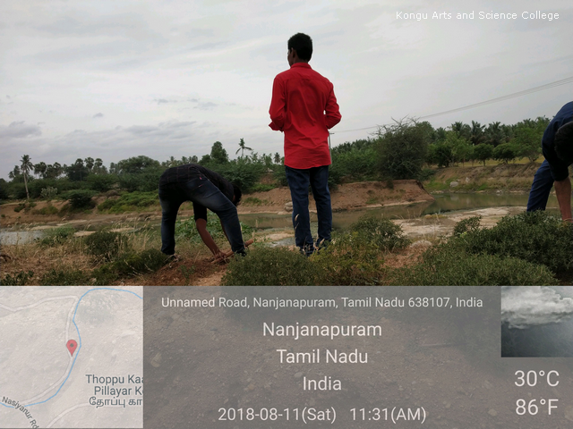 Sowing Neem and Palm Seedling at Check Dams situated in Perumpallam Odai in collaboration with Olirum Erodu Foundation by Youth Red Cross Volunteers.