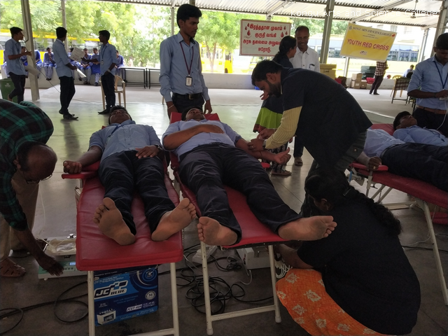 YRC and Global Institutions, Erode jointly organized blood donation camp at Global Institutions Campus, Erode