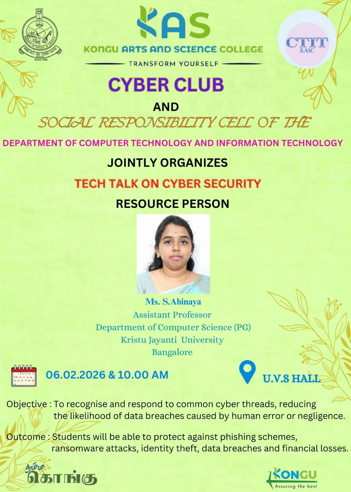 06.02.2026 Department of CT & IT Organizes Tech Talk on "Cyber Security" Read More ... |