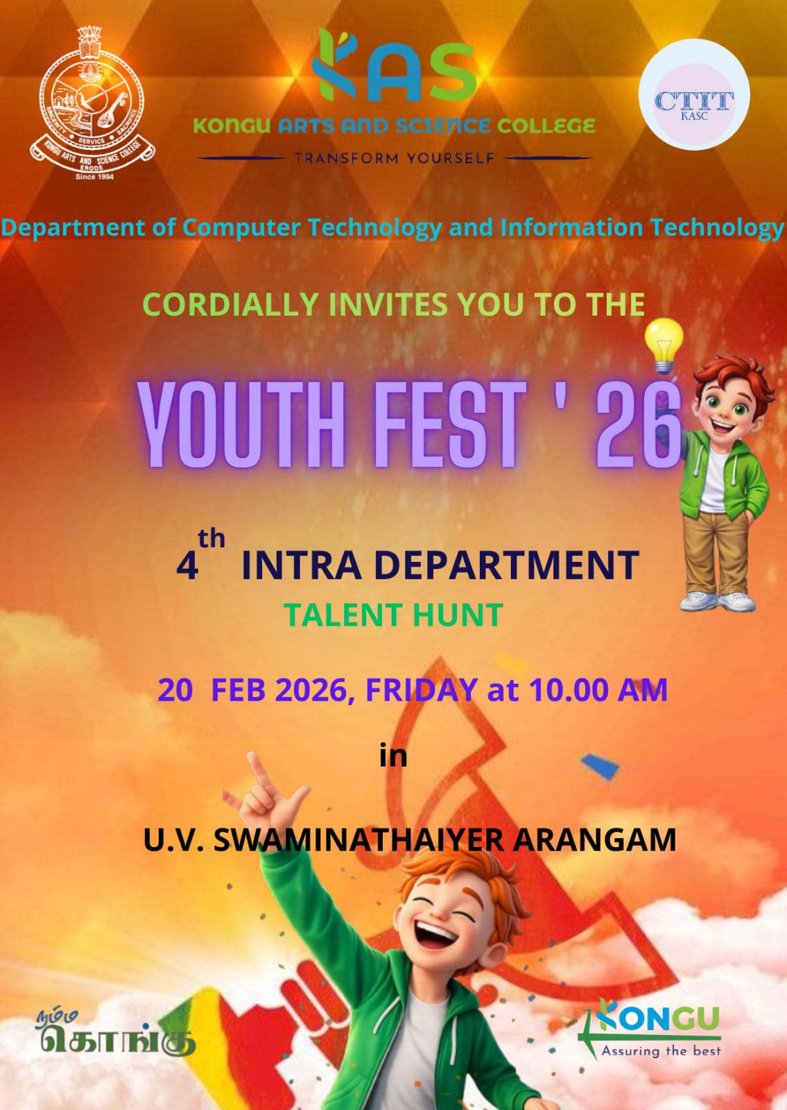 20.02.2026 Department of Computer Technology and Information Technology Organizes "Youth Fest'26 :: An Intra Department Talent Hunt" Read More ... |