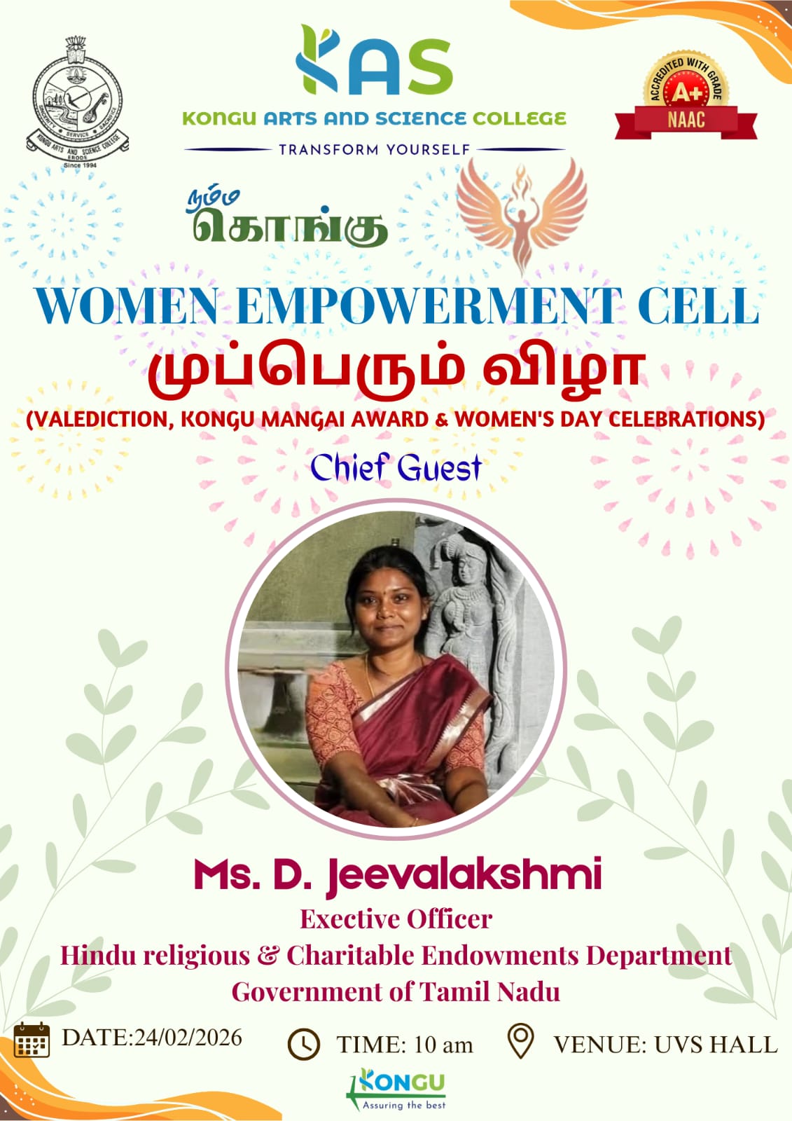 24.02.2026 Women Empowerment Cell Organizes "முப்பெரும்விழா :: Valediction, Kongu Mangai Award, and Women's Day Celebrations" Read More ... |