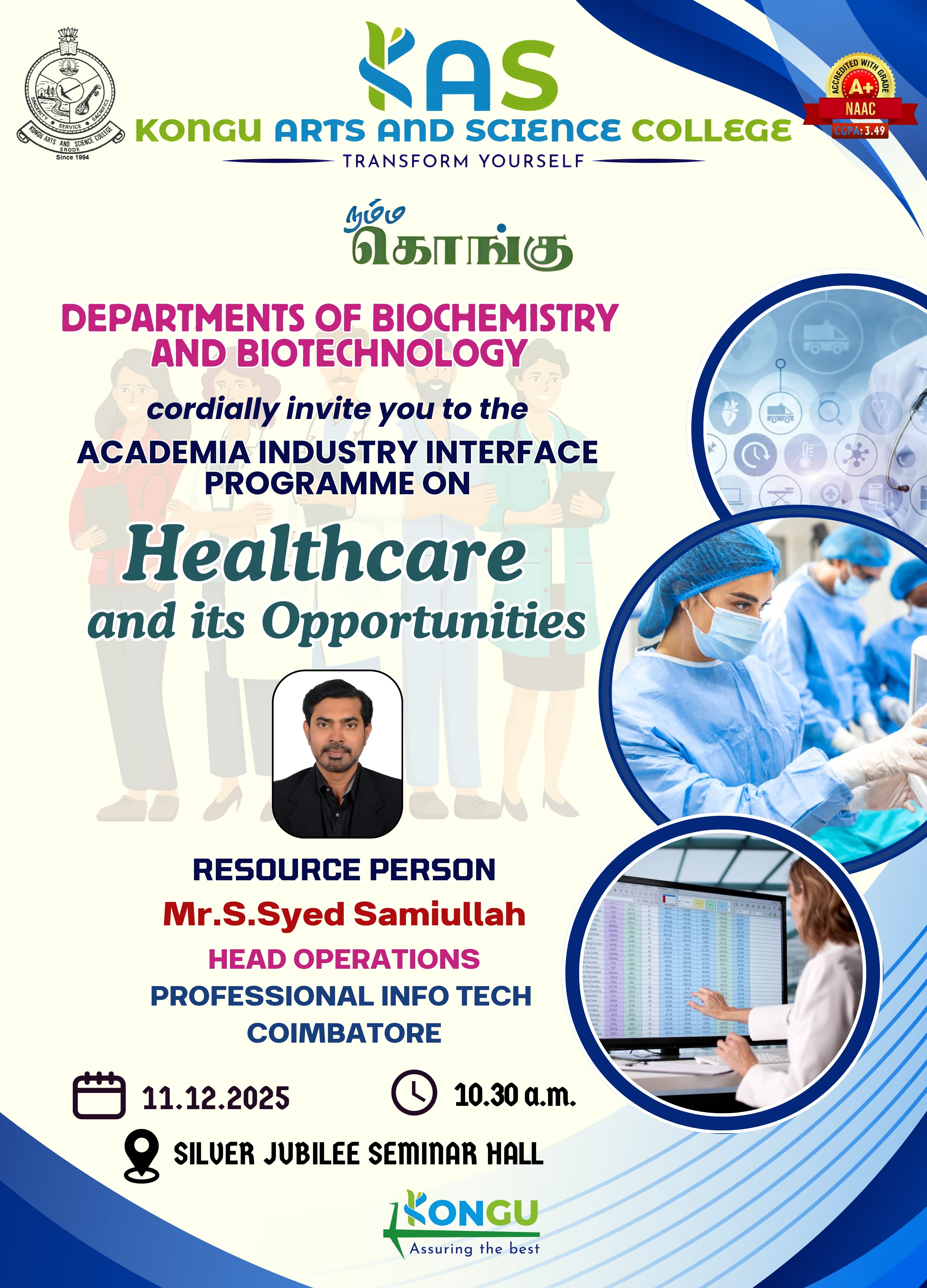 11.12.2025 Department of Biochemistry Organizes an Academia Industry Interface Programme on "Healthcare and its opportunities Read More ... |