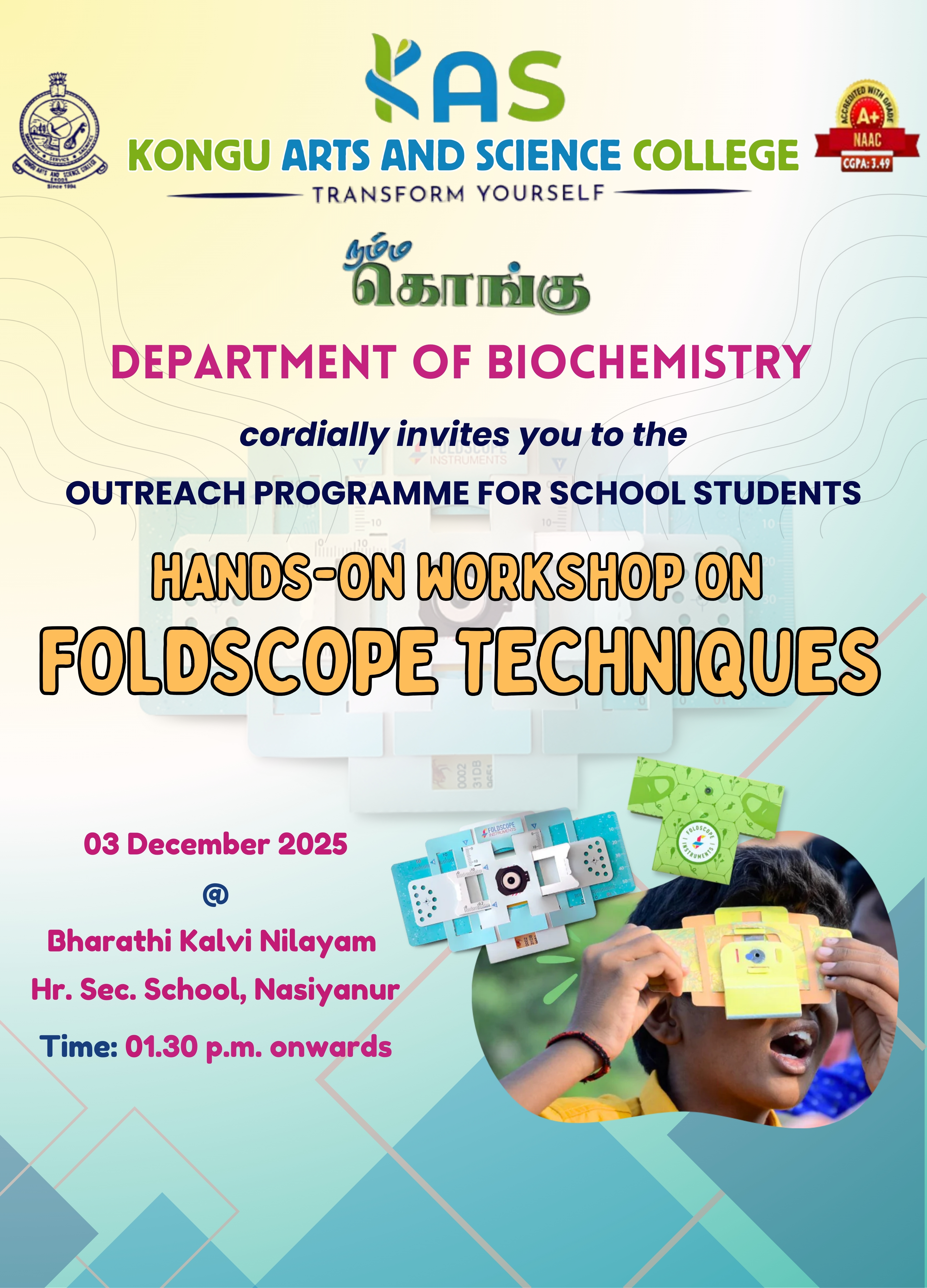 03.12.2025 Department of Biochemistry Organizes Hands on Workshop on "Foldscope Techniques" Read More ... |