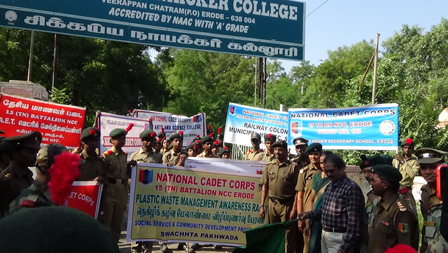 Plogging event was organized by 15 (TN) BN NCC Erode from CN College to Erode Bus stand.